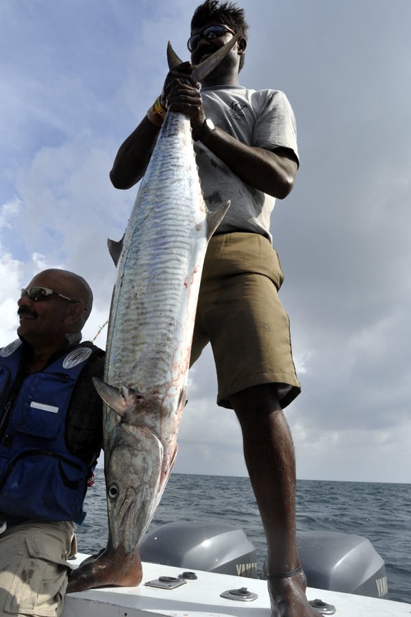 Pascal started the trip with a popper caught Barracuda that was released after a quick photograph.